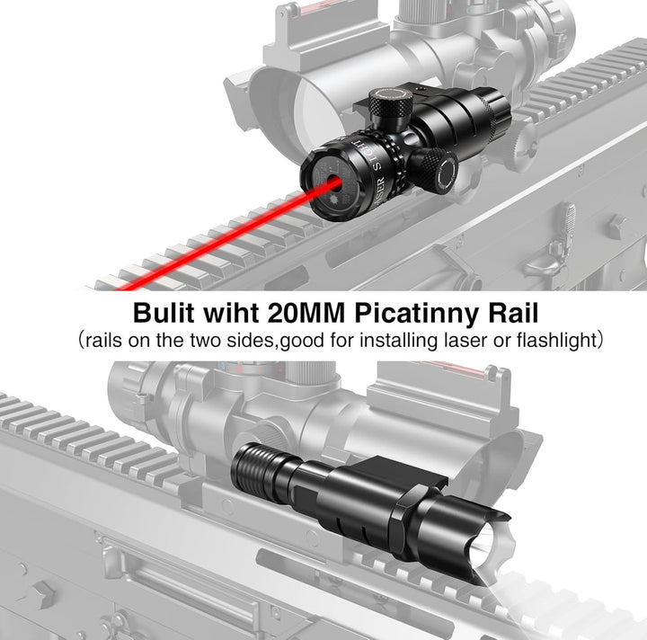 Includes diopter adjustment and mounts easily on standard 20mm rails, with side rails for additional accessories.