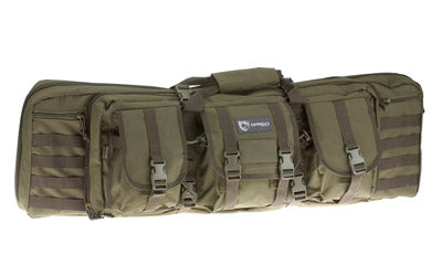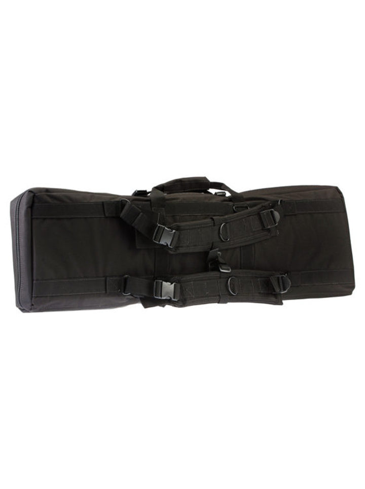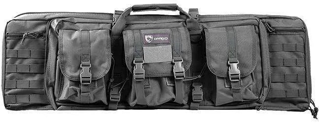 Drago Gear gun cases are designed to optimally secure and protect long guns, and come equipped with multiple storage areas to efficiently organize ammunition and accessories. These gun cases have padded backpack straps for hands-free transport, three large storage pouches for ammunition and accessories, four zippered storage areas, and two padded pistol pouches. MOLLE front panels allow attachment of load-bearing equipment. This water-resistant case is made of 600D polyester.