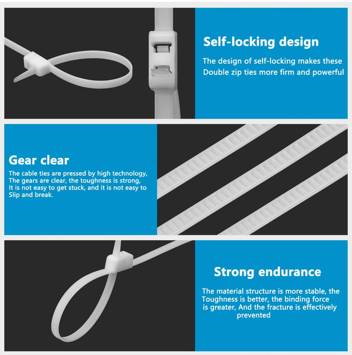 - 【Wide application】They could be used as extra-heavy-duty zip ties, both sturdy and strong. Applications for home, outdoor sport, office, garage, workshop, etc.