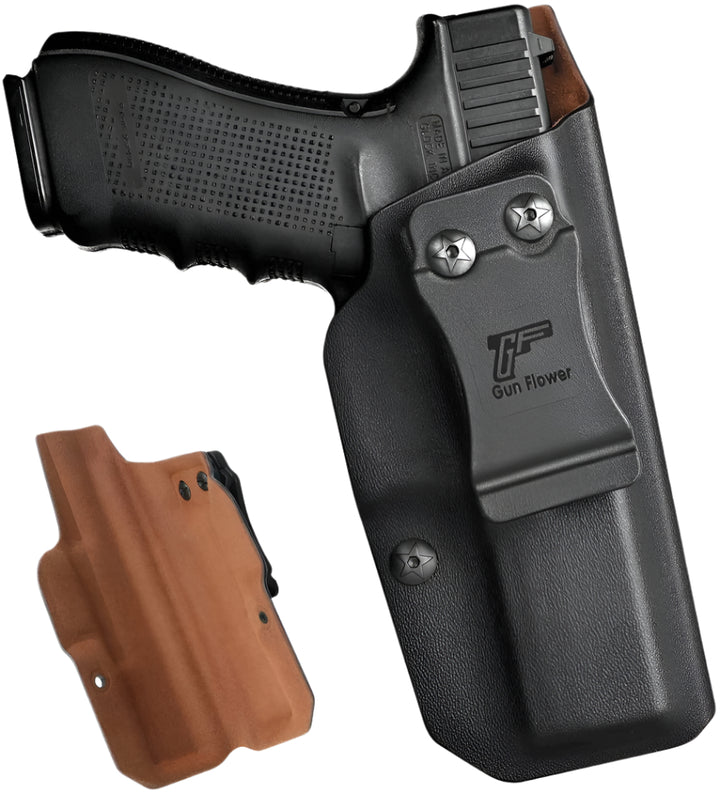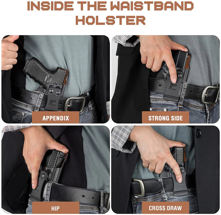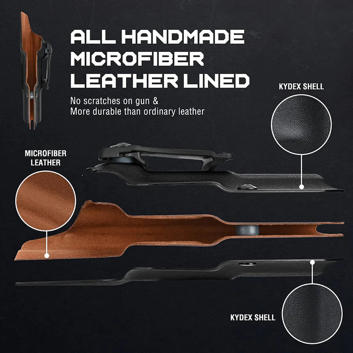 Crafted from durable Kydex with a soft internal lining, this holster offers protection for your firearm while ensuring all-day comfort. Expertly designed for discreet carry, it features adjustable retention and cant settings for a personalized fit. An audible click confirms secure weapon placement, and the undercut trigger guard allows a complete, unobstructed grip. Equipped with a reliable locking mechanism for added security, the ambidextrous design accommodates both right- and left-handed users. Compatible with 1.5" and 1.75" belts, it's tailored to fit Glock 19, 23, and 32 models.