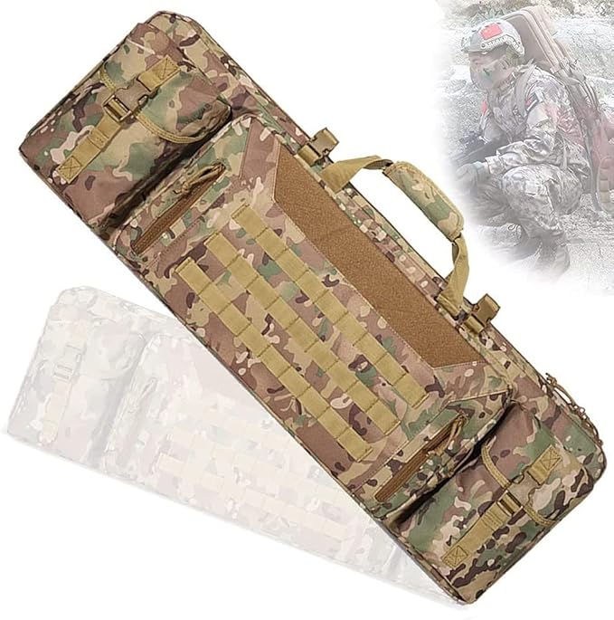 - The double rifle gun case holster is waterproof, shockproof, rugged, abrasion resistant and properly hardened, this dual tactical holster is the ideal carry tool and storage device for hunting, paintball, airsoft, training or other outdoor activities.