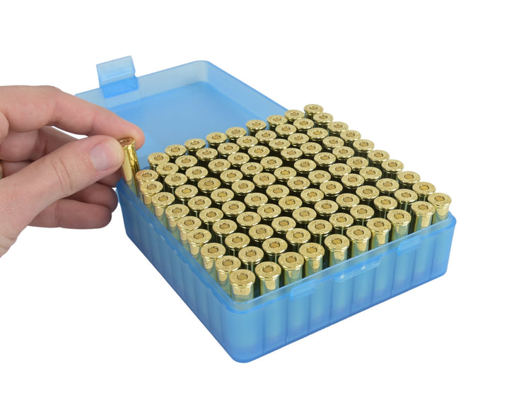 Perfect ammo carrier for those who wants to spend several hours at the range. Ideal for storing reloads. Stackable with easy-grip, scuff-resistant textured surface.