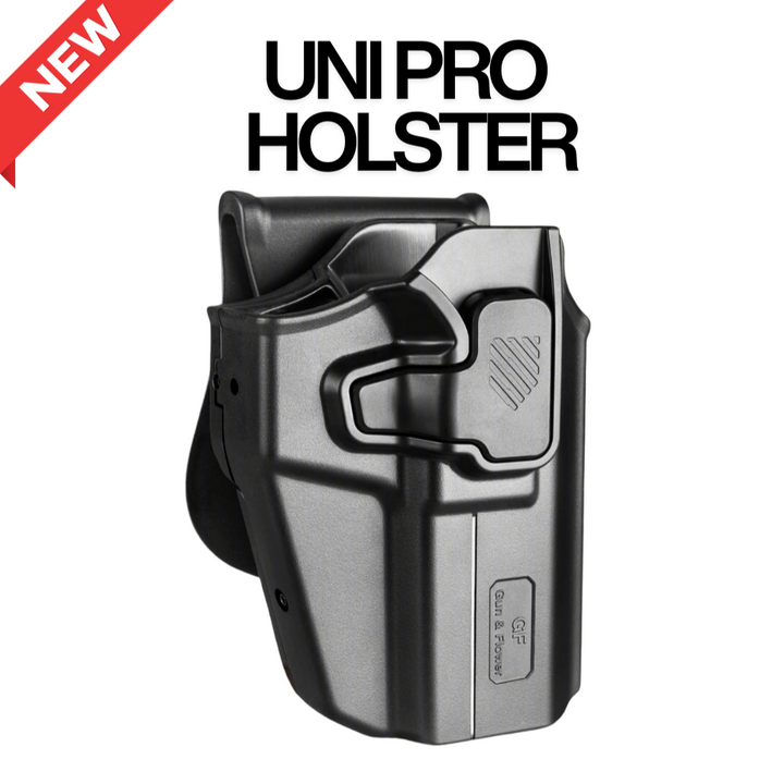 The Uni Pro Universal OWB Holster delivers versatile carry capability across 500+ firearm models with precision-engineered retention adjustment. Its T-guard locking button mechanism ensures secure weapon retention while facilitating consistent, dependable draws. Purpose-built for shooters demanding compatibility without compromising performance, this holster accommodates diverse platforms in a single solution. The adjustable retention system allows customization to your specific firearm's profile, while the locking button provides tactile feedback and positive engagement. Ideal for those maintaining multiple firearms or seeking a reliable universal platform.