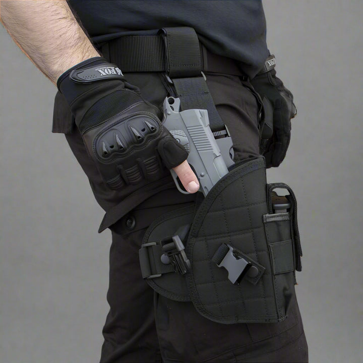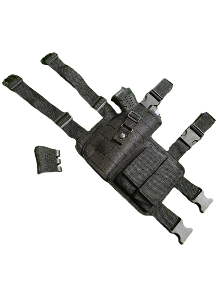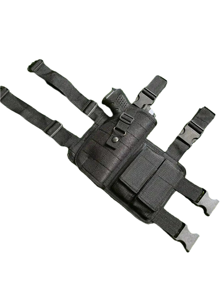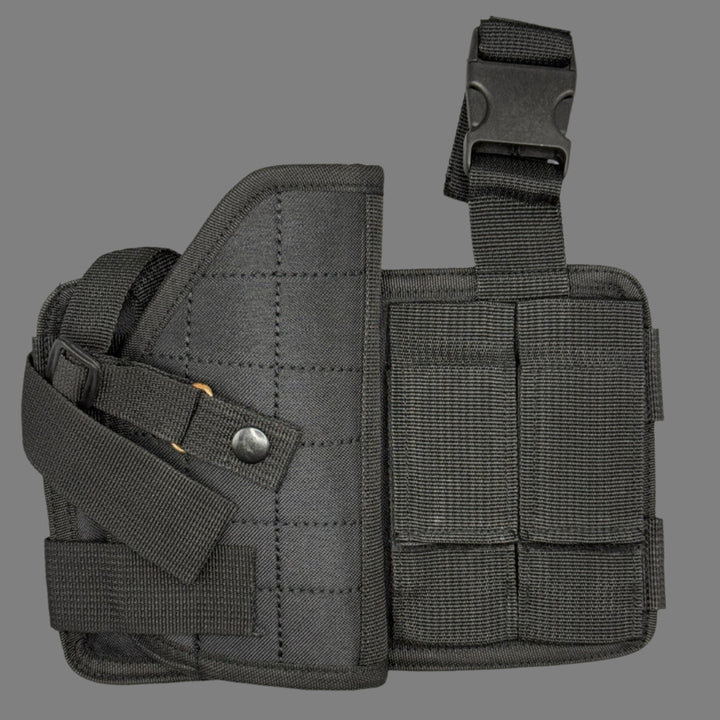 Expert-designed for optimal tactical performance and comfort, this Universal Drop Leg Holster efficiently carries your sidearm and accessories. Durable materials and adjustable components make it compatible with a variety of pistols, including both full-size and compact models.