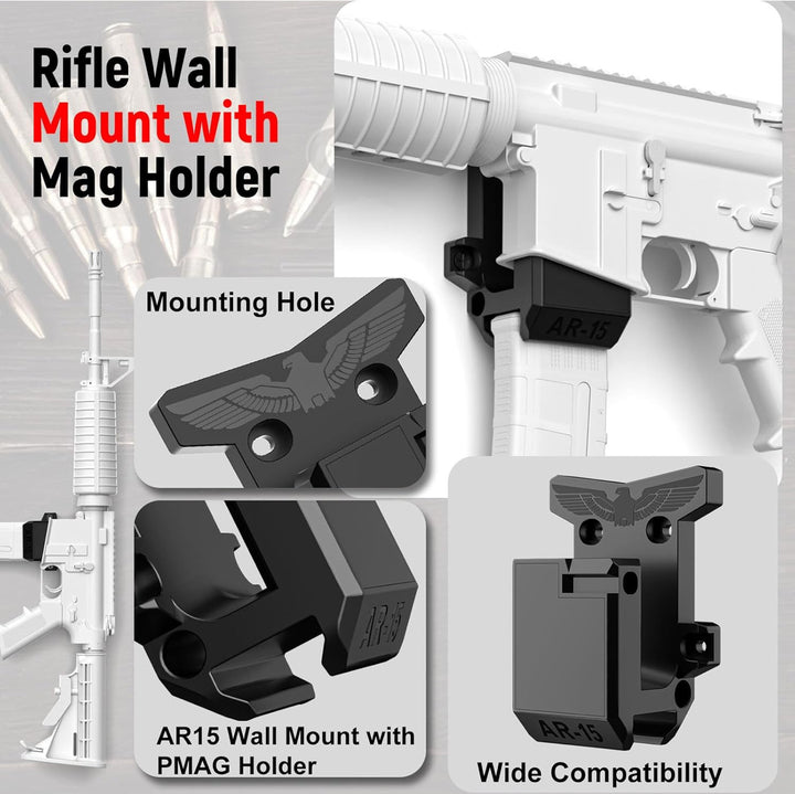 Effortlessly secure ARs and long guns weighing up to 300lbs with this top-of-the-line PA12 mount, which features a 2-in-1 design for storing 1 PMAG and a cable lock hole for additional safety measures. Place it in any desired location thanks to its 360-degree flexible installation design, and enjoy a quick and easy setup process with screws and a sleek frosting-treated surface that helps prevent scratches.